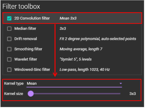 - Select "2D Convolution filter" on the "Filter toolbox" screen.