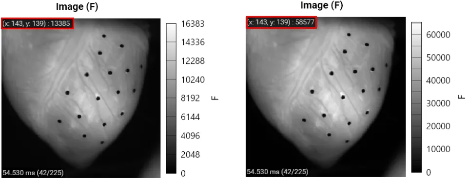 A dark image may be captured depending on staining condition of sample, problems with optical system, or sampling rate conditions. In this case, only a part of the 16-bit gradation is used.