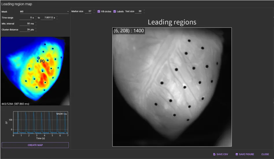 | Hold “Ctrl” key and drag mouse pointer to right | Select time range of waveform. You can create a "leading region map" for a specified time range only. |