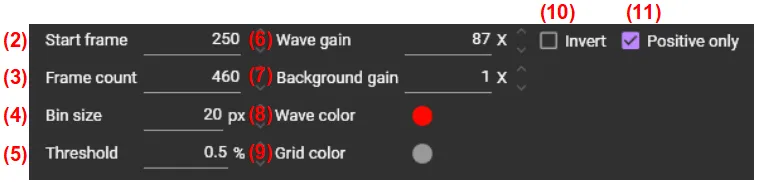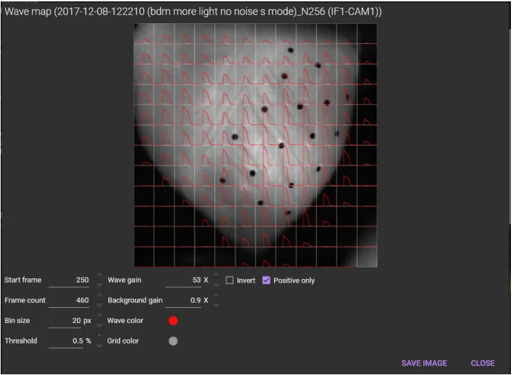 A wave map can be created like below. The average waveform of multiple pixels is displayed on the background image.