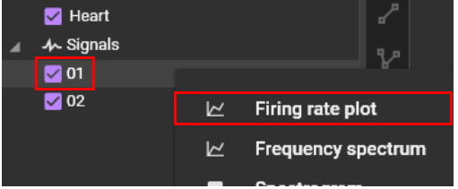 Right click on the signal name and select "Firing Rate".