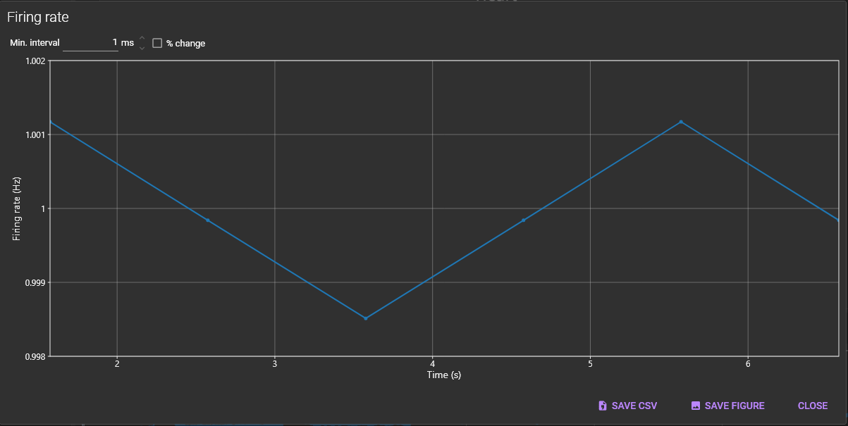 Time change of firing rate is displayed (X-axis: time, Y-axis: firing rate).